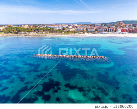 Panoramic aerial view of Lido San Giovanni beach in Alghero