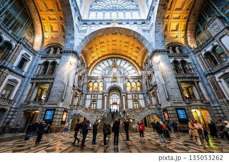 西ヨーロッパのベルギー第2の都市アントワープ アントウェルペン中央駅の荘厳な内装