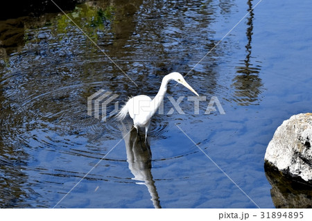 東京都三鷹の野鳥 仙川浅瀬を歩くダイサギ
