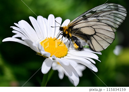 満開のマーガレットとアオスジアゲハ(久宝寺緑地)