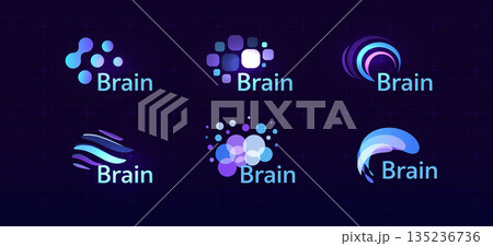 Brain Logo Icon Smart Digital Transformation Symbol AI Artificial Intelligence Computer Neural Science Research Technology. Abstract Creative Future Brains Set Logos Purple Color. Vector Illustration