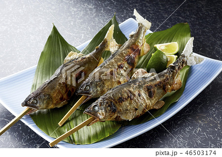 鮎 鮎の塩焼き 塩焼き 串焼き 川魚 お祭り,縁日 参道 神社 行楽シーズン