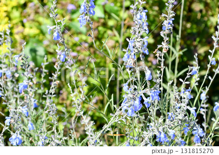 秋の公園に咲く青色のサルビア・アズレアの花