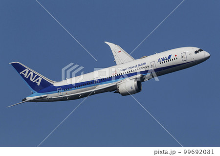 成田空港を離陸する旅客機・飛行機・全日空・ボーイング787