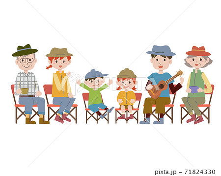 キャンプ場でくつろぐ3世代家族