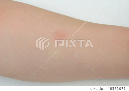 BCG予防接種翌日の赤ちゃんの腕の注射跡の様子
