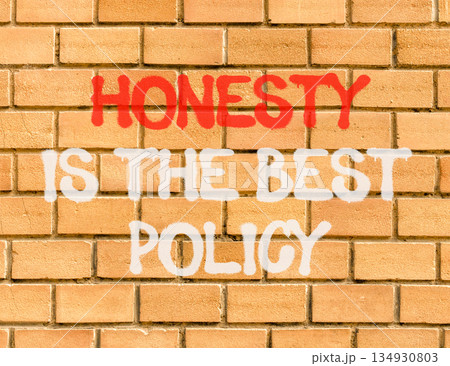 Honesty is the best policy symbol. Concept words Honesty is the best policy on beautiful brown brick wall. Beautiful brick wall background. Business honesty is best policy concept. Copy space.