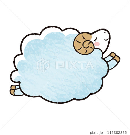 色鉛筆タッチのシンプルでかわいい目を閉じたモコモコの羊セット(横向き)