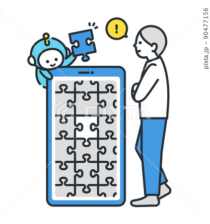 スマートフォンとAI。いつでもどこでもサポートしてくれる人工知能のイラスト素材。