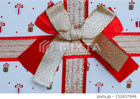 Elegant Red and Gold Gift Box with Ribbon Detail