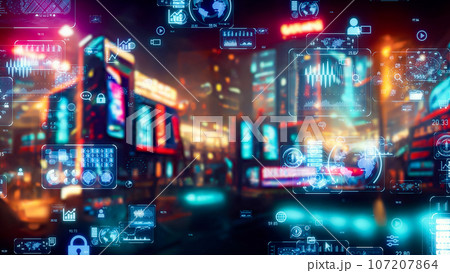 都市の夜景とデータ デジタルトランスフォーメーション