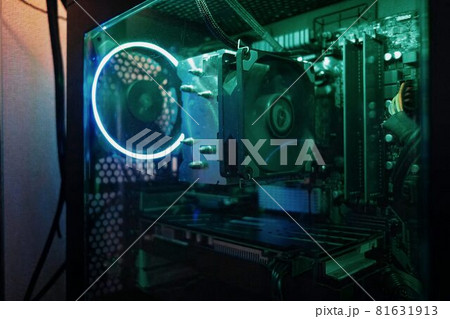 スケッチ風 スケッチ コンピューター 中 中身 ファン 電子回路 回転 黒 マクロ 電動 パソコン