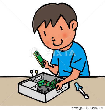 パソコンを組み立てる子供