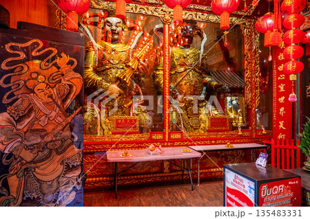 タイ・バンコク 旧正月の飾り付けが施された中華街の観音堂 / Bangkok, Thailand