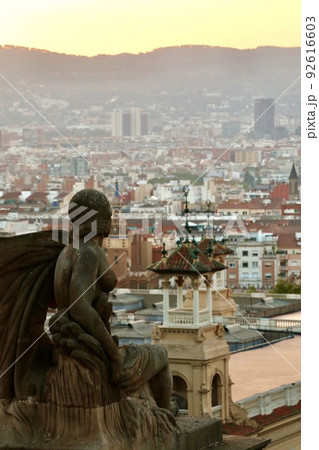 View of Barcelona city from the mountain Montjuic in Catalonia, Spain