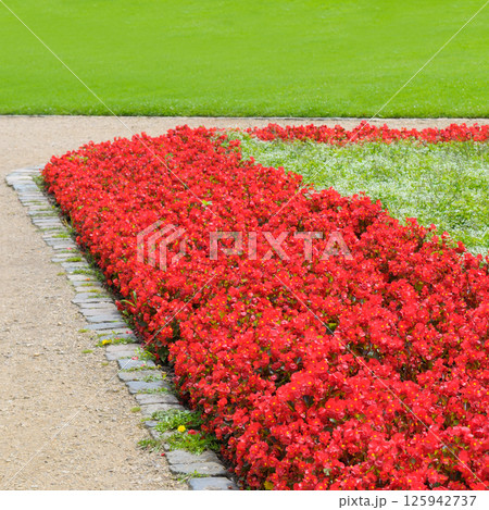 Begonias, semperflorens begonias, in the garden, potted begonia