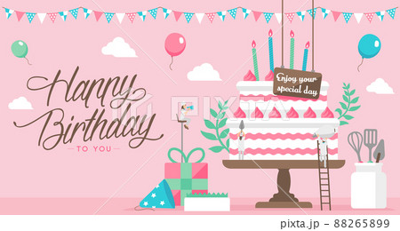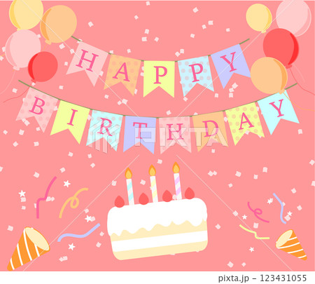 Happy Birthday ハッピーバースデー/ バースデーケーキ ベクターイラスト
