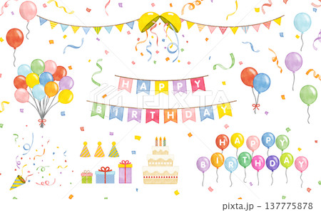 水彩風 誕生日パーティー素材セット