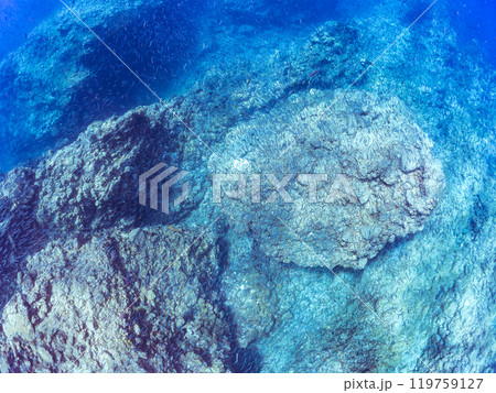 美しいキビナゴ(ニシン科)他の大群。静岡県伊豆半島賀茂郡南伊豆町中木ヒリゾ浜-2024年