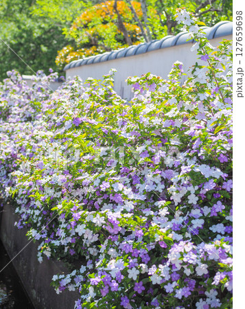 (静岡県)伊豆下田、満開のアメリカジャスミン(ニオイバンマツリ)が美しい、了仙寺