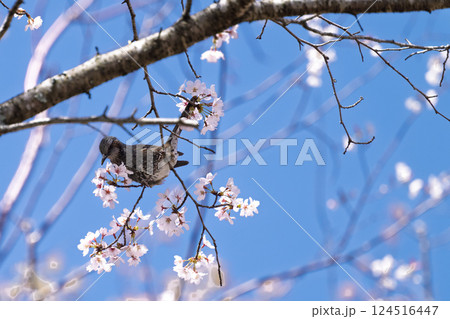 さくらの蜜を吸うヒヨドリ 満開の桜 春