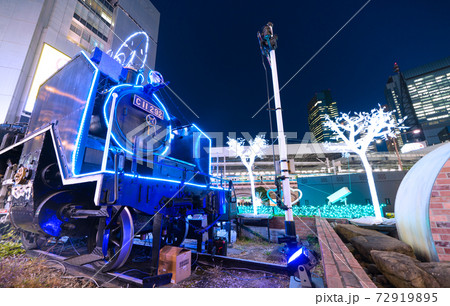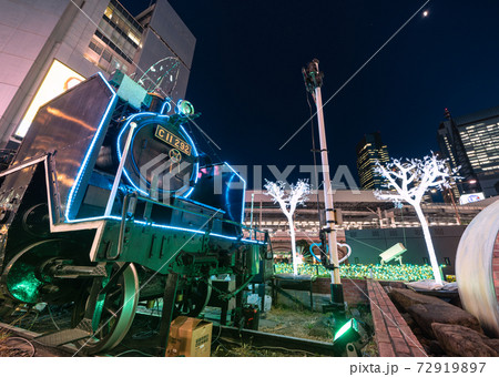 日本の東京都市景観 新橋駅 日比谷口。新橋SL広場の蒸気機関車などを望む=12月26日
