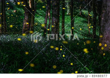 宮崎 西都原古墳群 月光に照らされた女狭穂塚(コノハナサクヤヒメ)を舞うヒメボタル