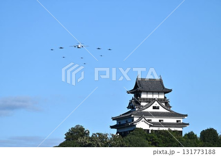 犬山城と異機種大編隊飛行 航空祭予行