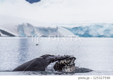 Dead whale on a Baja California Sur nearby a sandy beach bahia magdalena lagoon aerial drone panorama