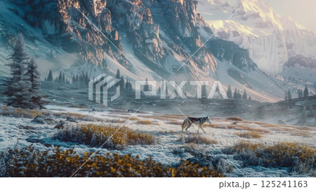 Digital Painting meadow in the forest Overlooking the mountains and waterfalls.
