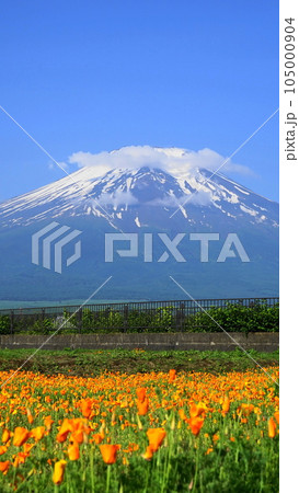 冠雪の富士山と黄色い花畑のコラボ 06月風景・富士山533カリフォルニアポピーV9.16