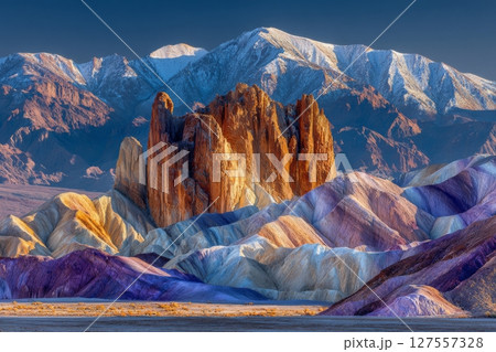 The location of Zabruski Point is Manly Beacon within Death Valley National Park California