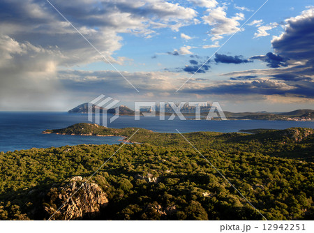 Sardinia coast with famous part of Costa Smeralda with amazing beaches in Italy