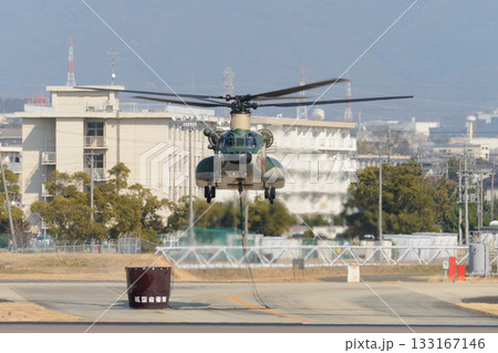 離陸準備をする陸上自衛隊のヘリコプターCH-47J