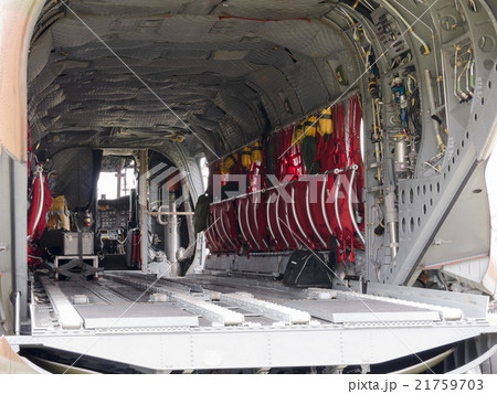 航空自衛隊輸送ヘリコプターCH-47J後方から見た機内