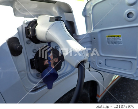 充電中の電気自動車エコカー減税対象車先進技術のモーターでパワフルな加速