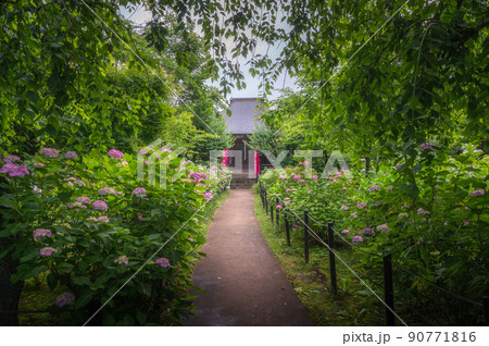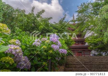 本土寺 弁天堂と弁天池 あじさいとスイレン(千葉県松戸市)