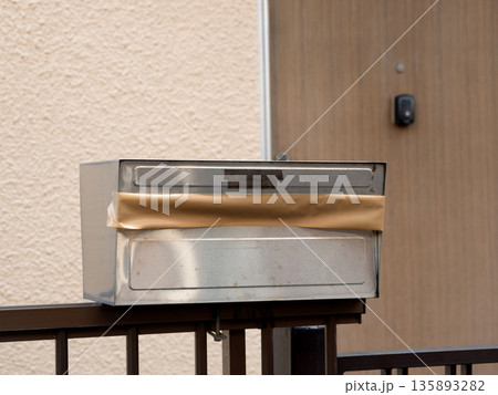 ガムテープで投入口が塞がれた古い郵便ポスト