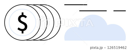 Stack of coins symbolizing financial savings next to a cloud icon. Ideal for financial planning, cost efficiency, cloud technology, digital economy, online storage solutions, fintech promotions, SaaS