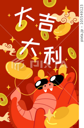 Chinese dragon with luck money and golden sycee ingots