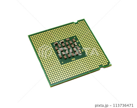 back side of personal computer CPU processor chip isolated on white background