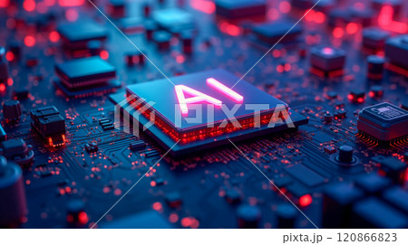 High-performance artificial intelligence chip for accelerated neural networking, cutting-edge CPU technology for efficient machine learning, smart computing circuit board with glowing AI inscription