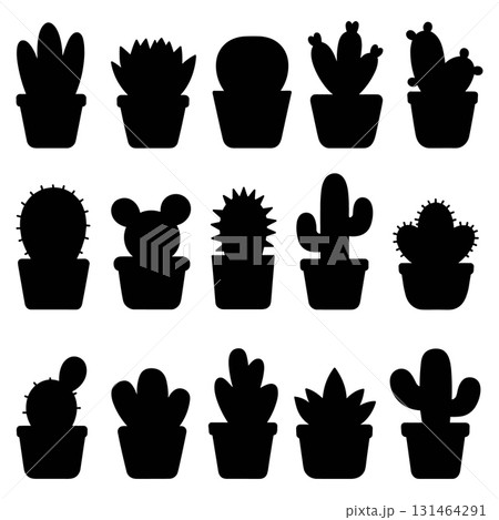 Potted Cactus and Succulent Silhouette Vector Set. Minimalist Houseplant Vector Icons.