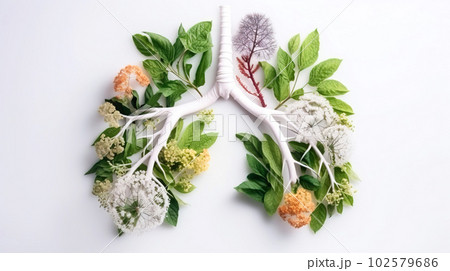 Health Day, the concept of human lungs in the form of grass and trees. AI generated. White background.