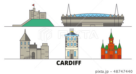 United Kingdom, Cardiff flat landmarks vector illustration. United Kingdom, Cardiff line city with