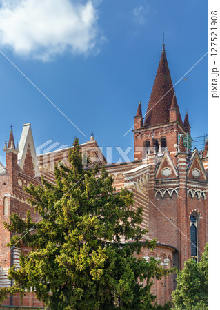 Panoramic exterior view of the medieval Cathedral of Assisi, Italy