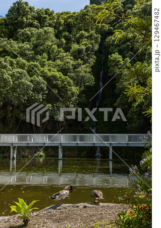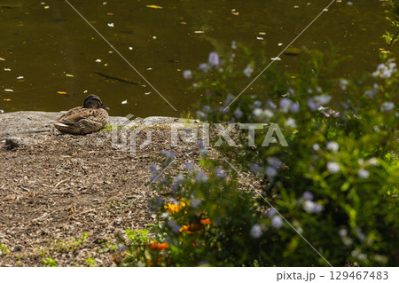 ニュージーランド ホークスベイ地方のネイピアにあるセンテニアル・ガーデンの池でくつろぐ鴨