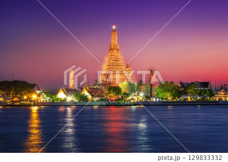 バンコクにあるワット・アルンのとても美しい夕焼け風景