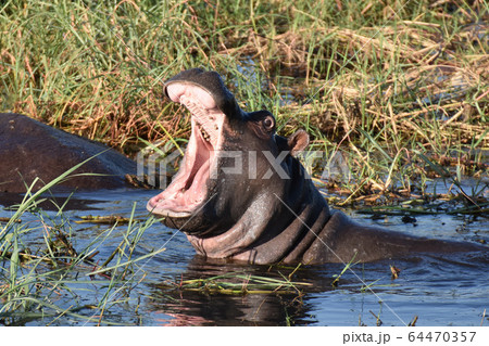 カバのあくび(チョベ国立公園、ボツワナ)