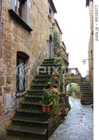 チヴィタ・ディ・バーニョレージョの階段に咲く花々